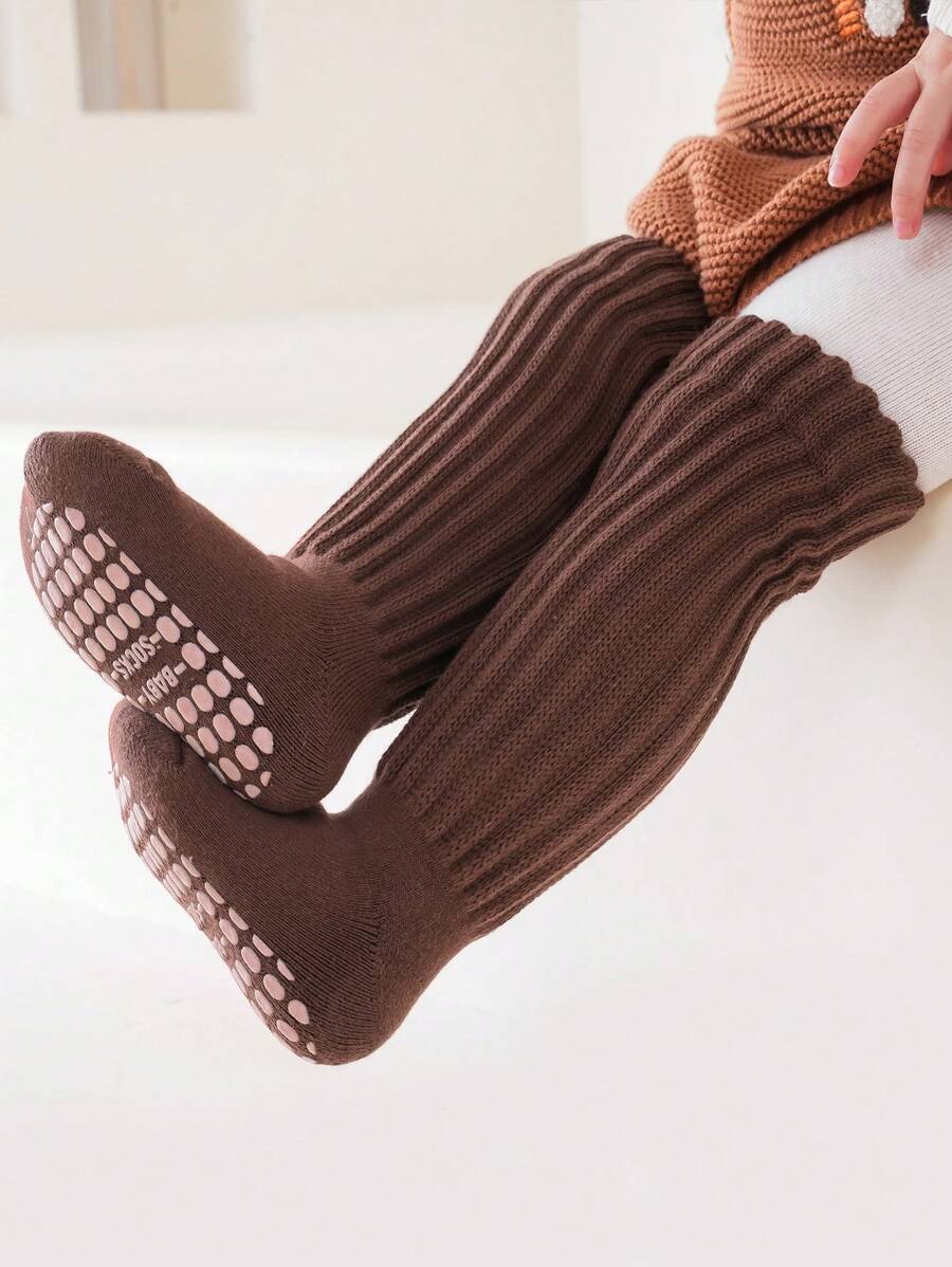 2 Pairs Anti-Slip Dot Grip Baby Toddler Long Socks, Thick Elastic Cuff Ankle Warmers