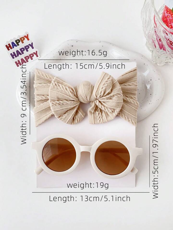 2 Pcs/Set New Baby Girls Boys Cute Solid Color 2 Style Bowknot Hairband Round Kids Children Fashion Glasses Eyewear Hair Accessories Set,