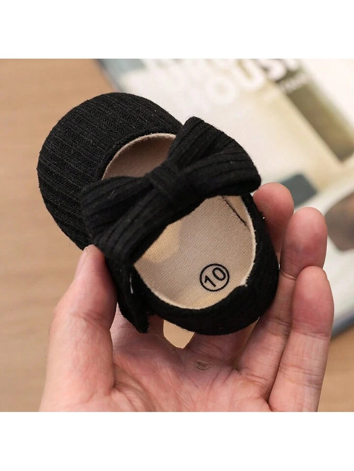 1pair Girls' Bowknot Knitted Fabric Shoes